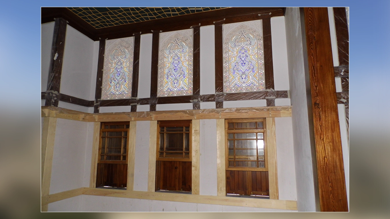 The cultural center is located behind the monument, on the left side of the entrance to the complex built in the Martyrs’ Cemetery area. Architecturally, its tan paint, wooden shutters, exterior windows, wooden-slatted eaves, wooden moldings, guillotine windows, and bay windows reflect the traditional Turkish house culture with its wooden frame and Baghdad plaster.