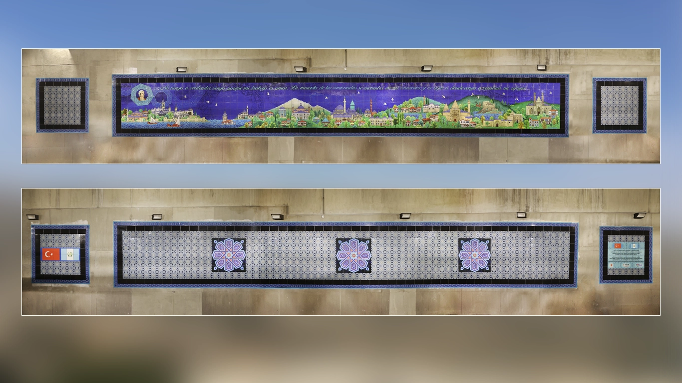 Production Process: All the tiles used in the panel were produced in Turkey, transported to Guatemala, and assembled there. The project was carried out by Turkish tile masters.