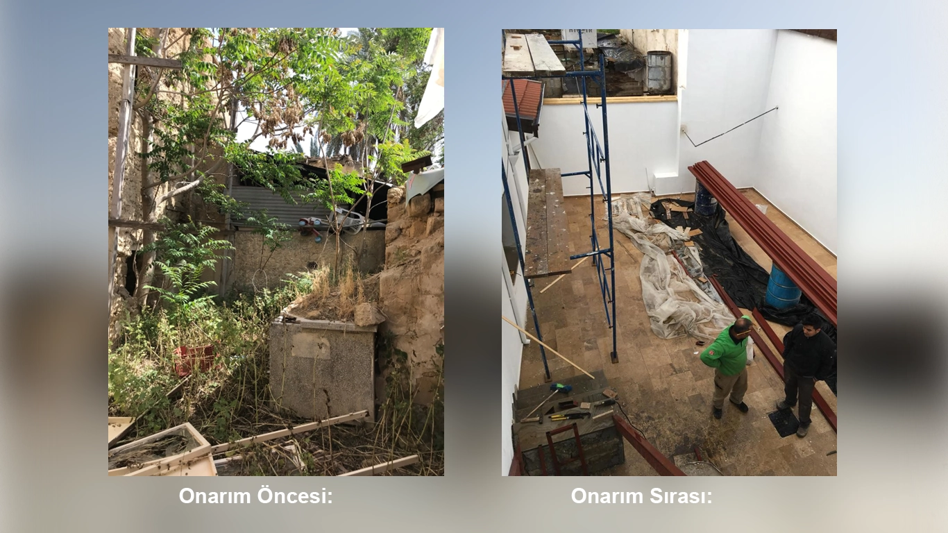 Öncelikle çevre yapıların avlulara bakan kısımlarının güçlendirilerek Ev için tehlike oluşturmasının önlenmesi planlanmıştır.